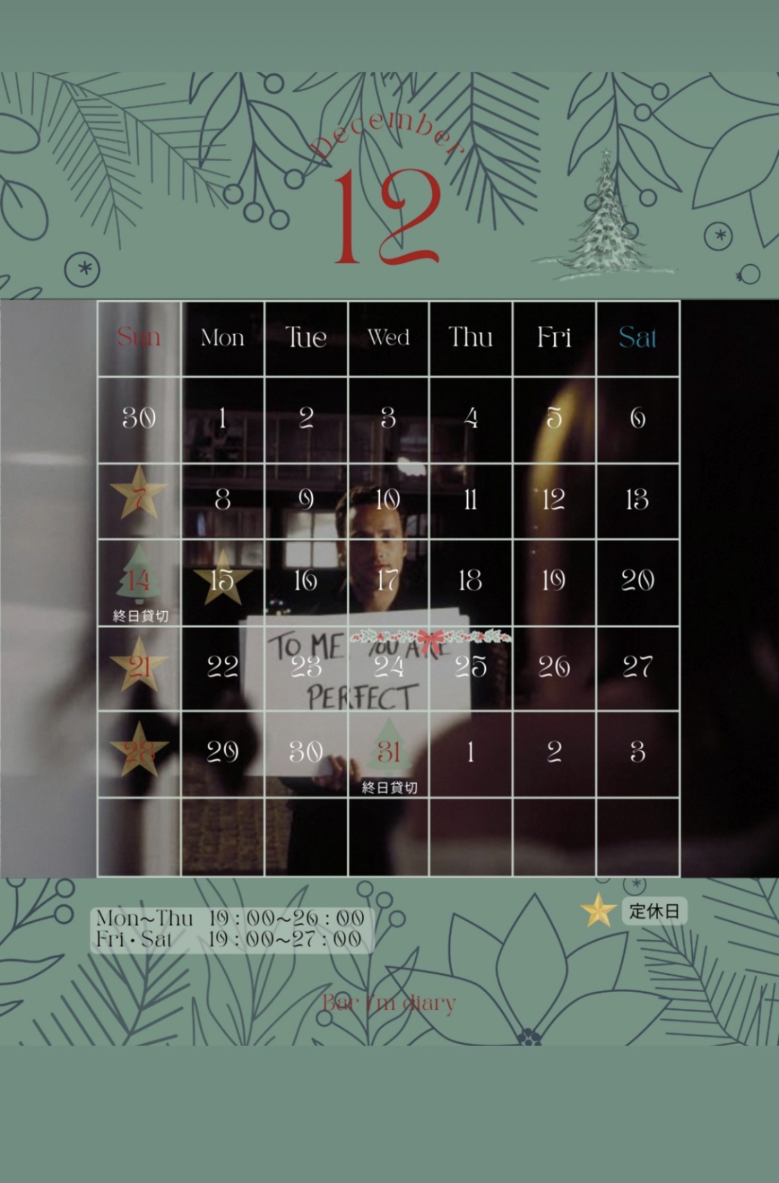 12/15月はお休みいただきます。